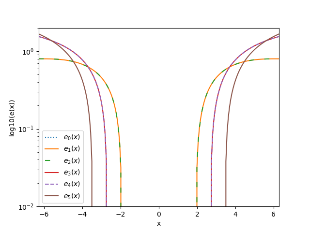 As it is seen in the previous figure, close to the evaluation point \(a\), the approximation error decreases as we increase the number of terms in the expansion.